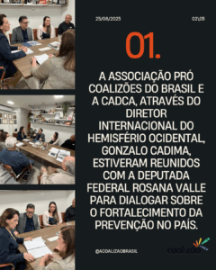 Na última semana, a CADCA (Community Anti-Drug Coalitions of America) e a Associação Pró-Coalizões do Brasil realizaram uma reunião com a Deputada Federal Rosana Valle, com o objetivo de fortalecer o diálogo sobre políticas públicas voltadas à prevenção e mobilização comunitária no país.