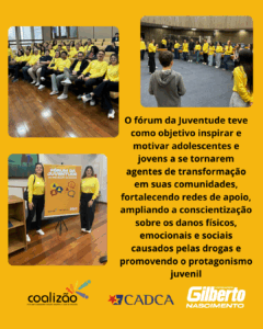 O objetivo central do Fórum foi inspirar e motivar adolescentes e jovens a se envolverem ativamente na prevenção, reconhecendo-os como agentes de transformação em suas comunidades. A programação trouxe palestras, rodas de conversa e treinamentos específicos para os jovens, abordando os impactos físicos, emocionais e sociais do uso de drogas, além de apresentar ferramentas práticas para a construção de estratégias de prevenção.